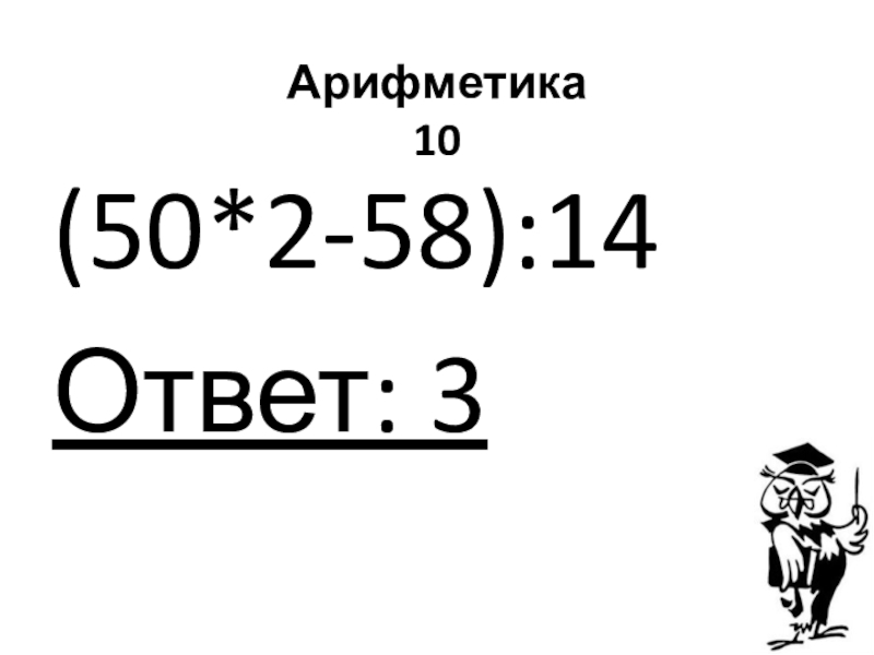 Арифметика 10(50*2-58):14Ответ: 3