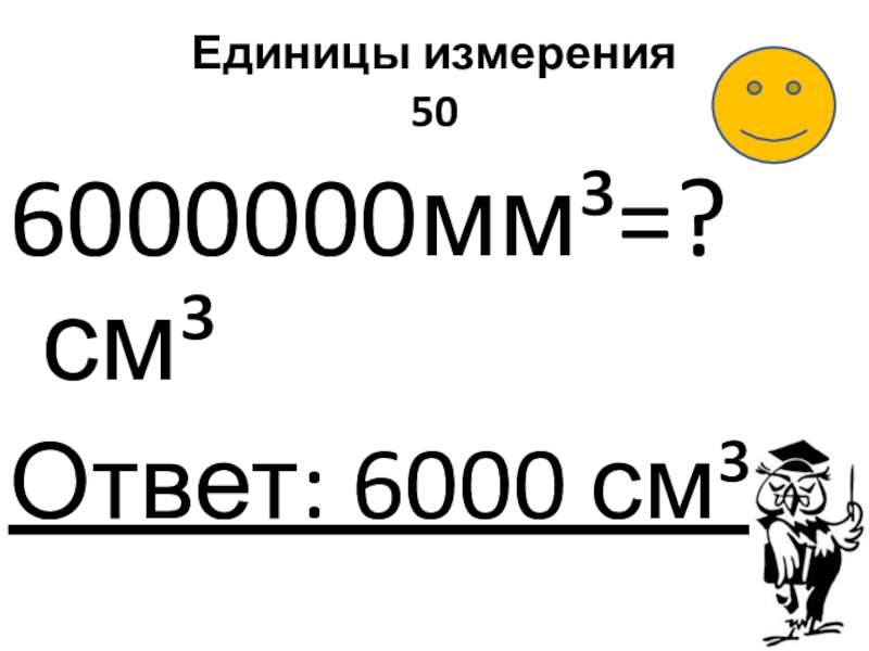 Единицы измерения 506000000мм³=? см³Ответ: 6000 см³