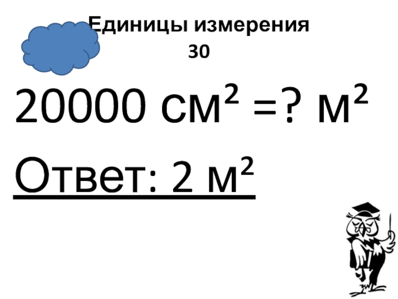 Единицы измерения 3020000 см² =? м²Ответ: 2 м²