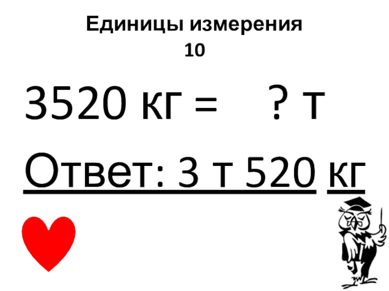 Единицы измерения 103520 кг =  ? тОтвет: 3 т 520 кг