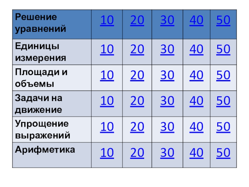 Презентация, доклад урока-игры по математике Своя игра (5 класс)