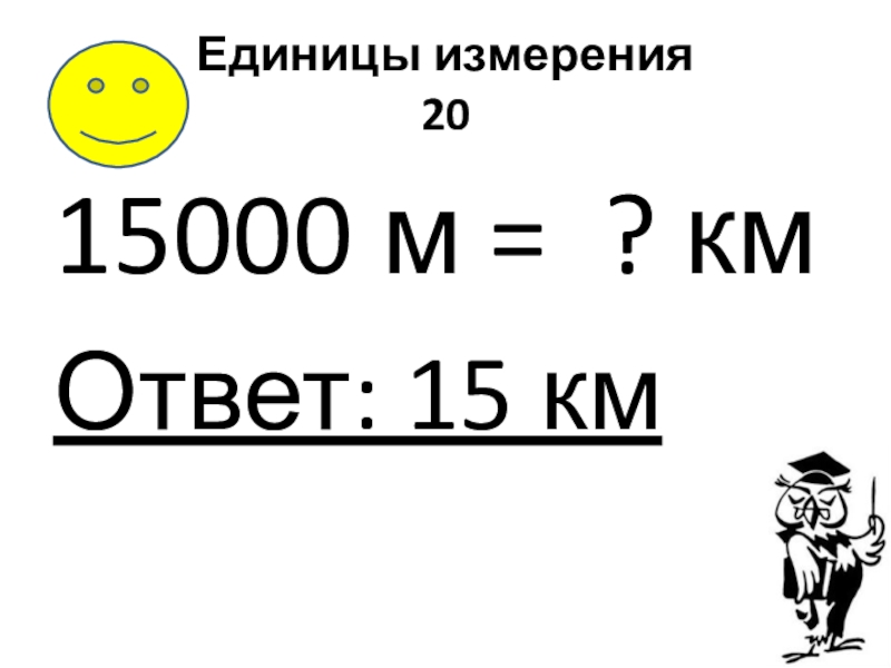 Единицы измерения 2015000 м = ? кмОтвет: 15 км