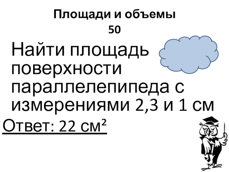 Слайд 17Площади и объемы 50