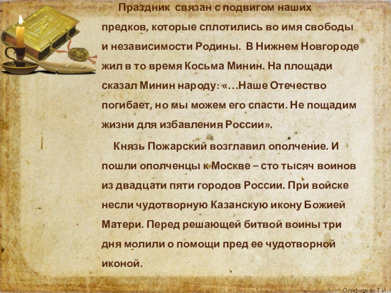 Слайд 8 Праздник связан с подвигом наших предков, которые