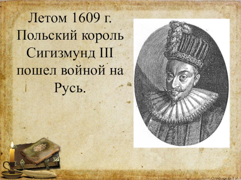 Слайд 7Летом 1609 г. Польский король Сигизмунд III пошел войной на Русь.