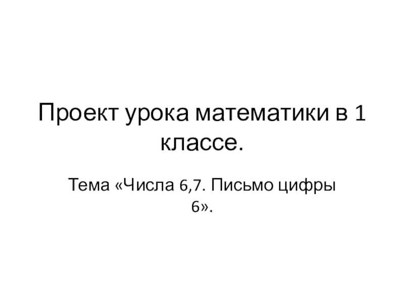 Проект урока математики в 1 классе.Тема «Числа 6,7. Письмо цифры 6».