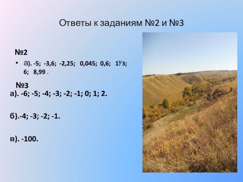 а). -6; -5; -4; -3; -2; -1; 0; 1; 2.