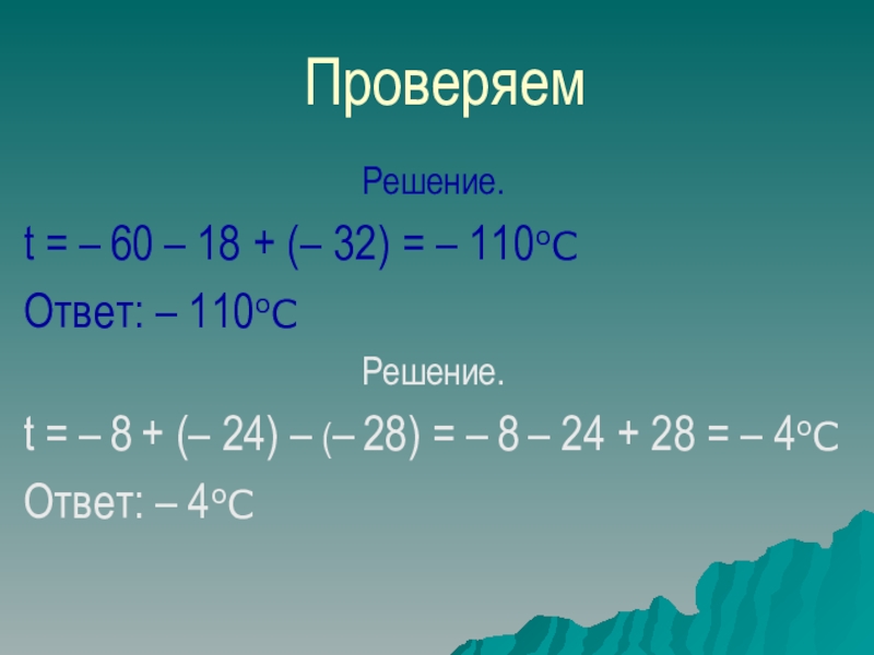 t = – 8 + (– 24) – (– 28) = – 8 – 24 + 28 = – 4оС