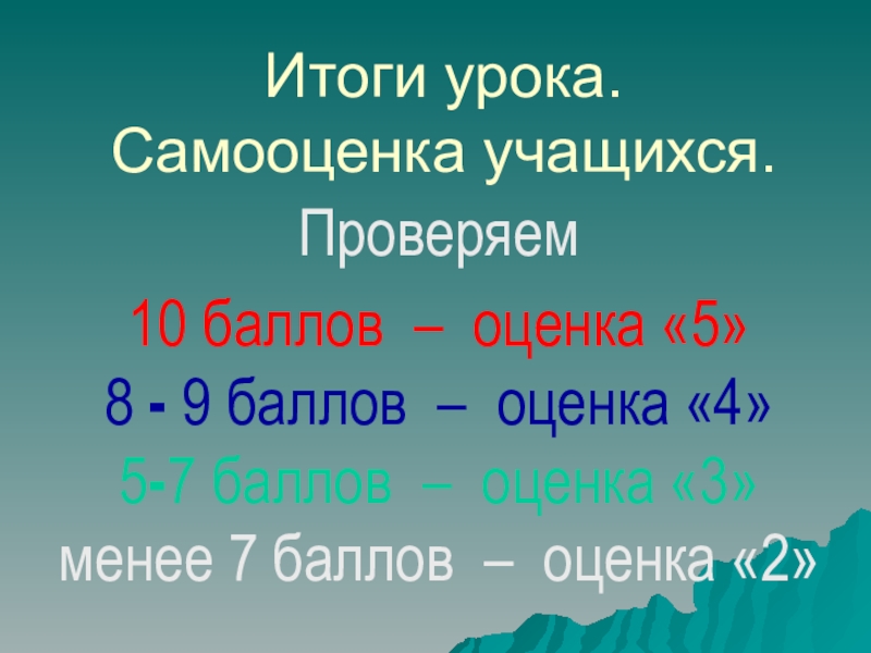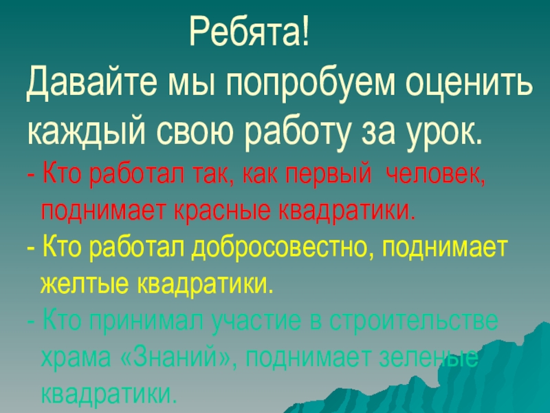 Давайте мы попробуем оценить каждый свою работу за урок.