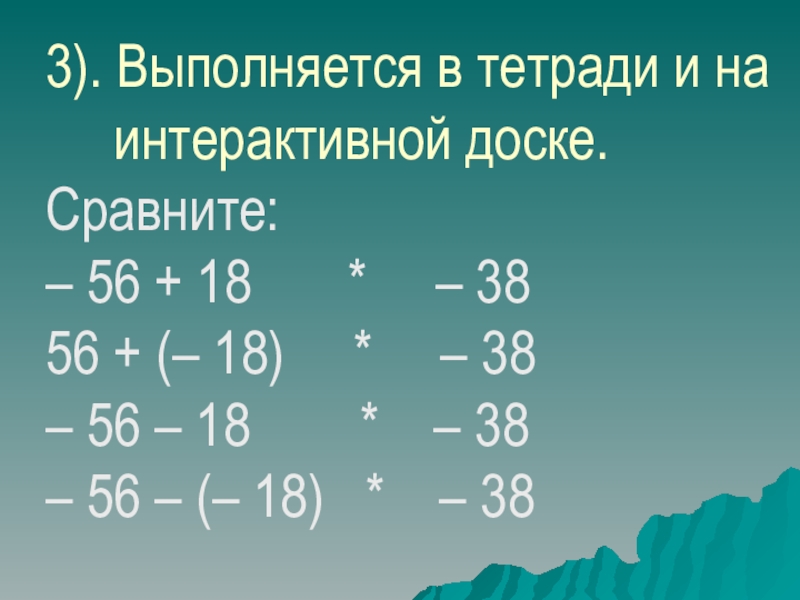г) – 38 – (– 38) = 0 г) 9 – 75= – 66