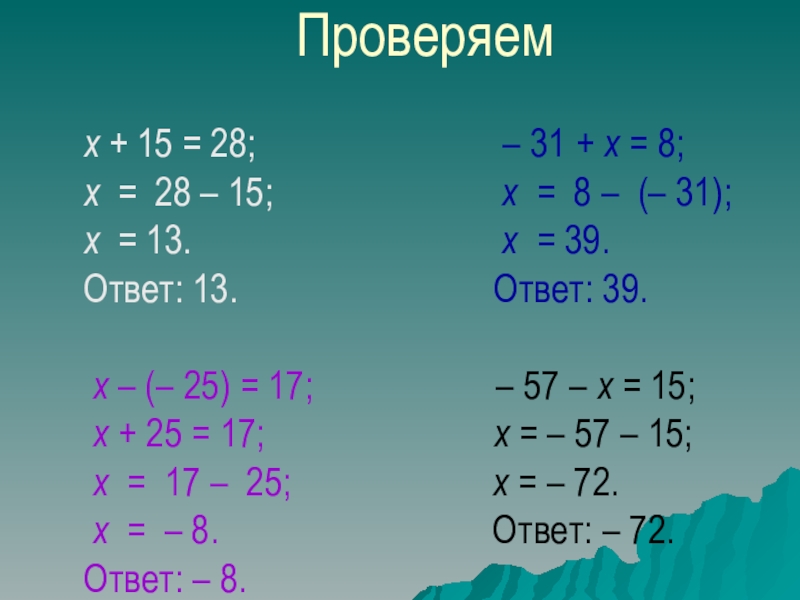 х = – 8. Ответ: – 72. Ответ: – 8.