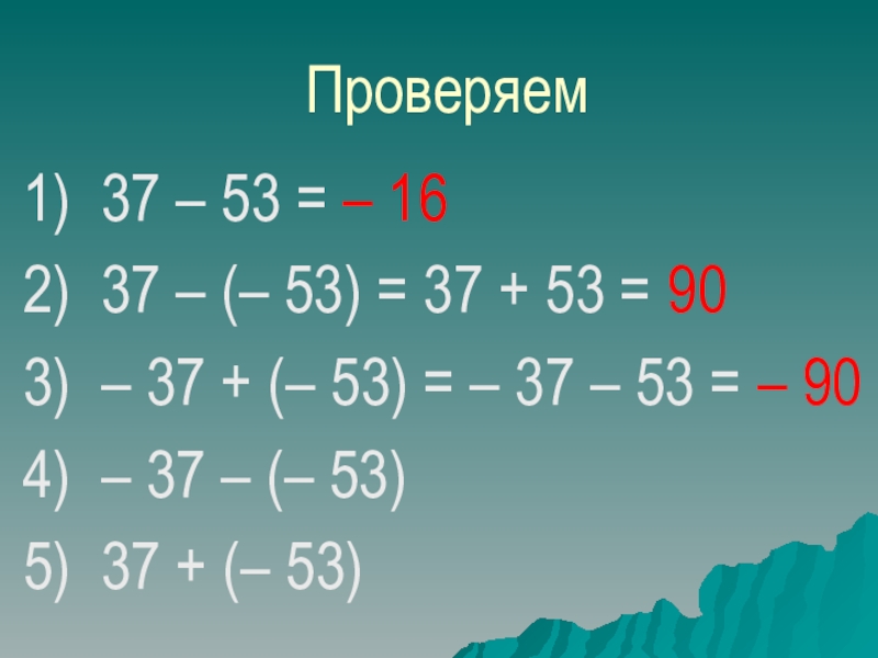 3) – 37 + (– 53) = – 37 – 53 = – 90