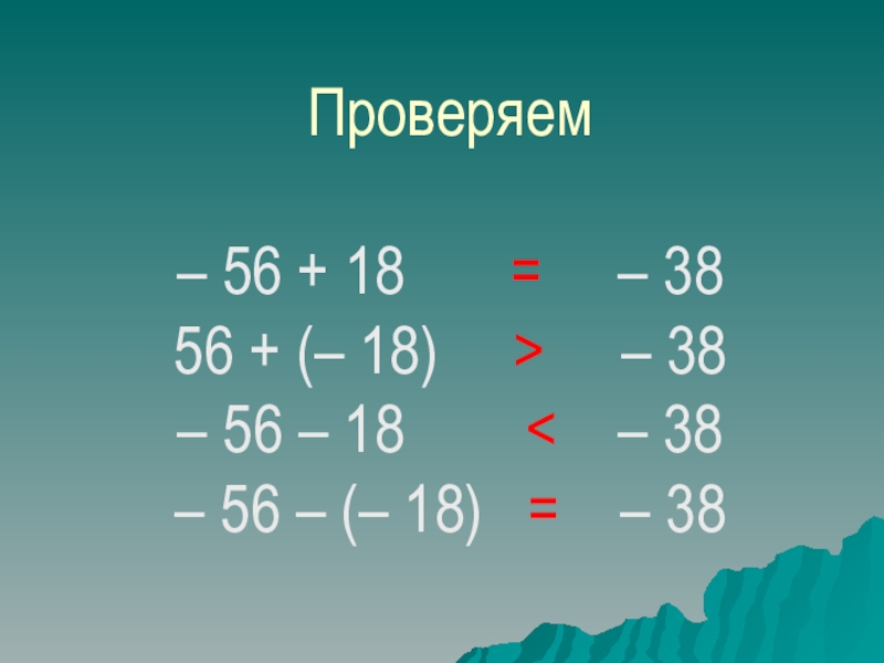 в) 0 – (– 25) = 25 в) 0 – (– 98) = 98