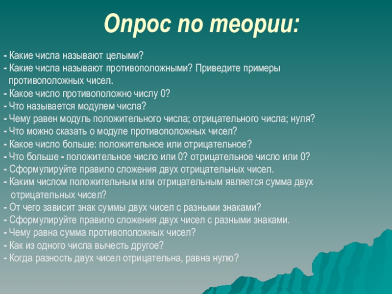 - Чему равен модуль положительного числа; отрицательного числа; нуля?