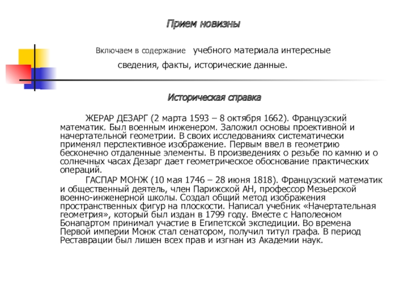 Включаем в содержание учебного материала интересные сведения, факты, исторические данные.
