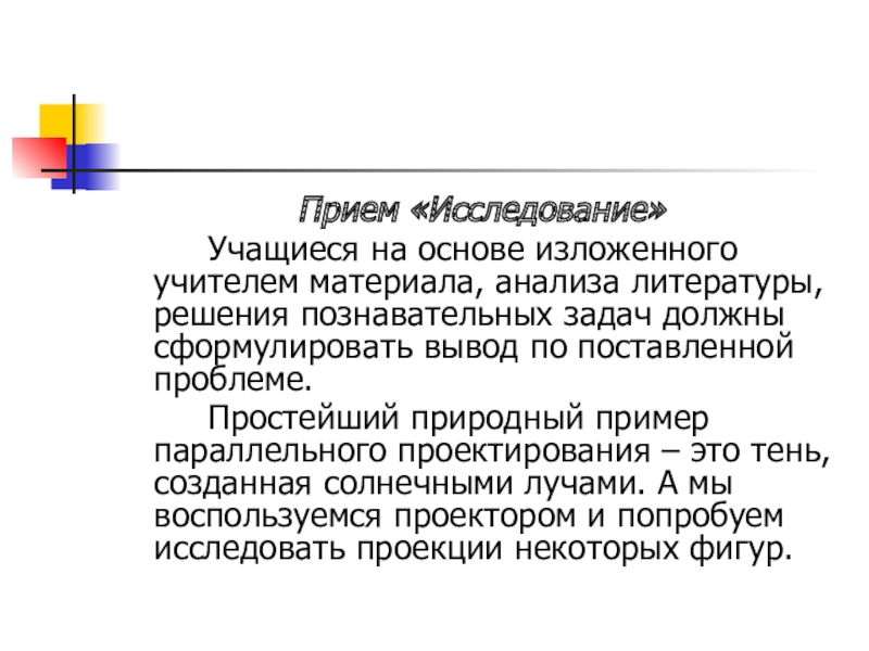 Простейший природный пример параллельного проектирования – это тень, созданная солнечными лучами. А мы воспользуемся проектором и попробуем исследовать проекции некоторых фигур.
