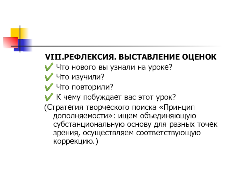 VIII.РЕФЛЕКСИЯ. ВЫСТАВЛЕНИЕ ОЦЕНОК
