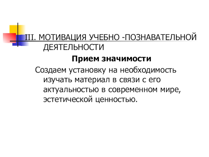 Слайд 5III. МОТИВАЦИЯ УЧЕБНО -ПОЗНАВАТЕЛЬНОЙ ДЕЯТЕЛЬНОСТИ