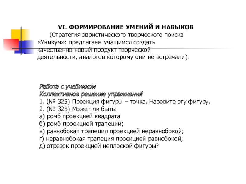 VI. ФОРМИРОВАНИЕ УМЕНИЙ И НАВЫКОВ