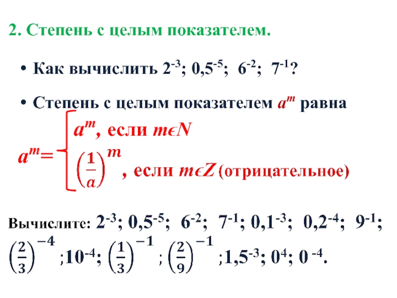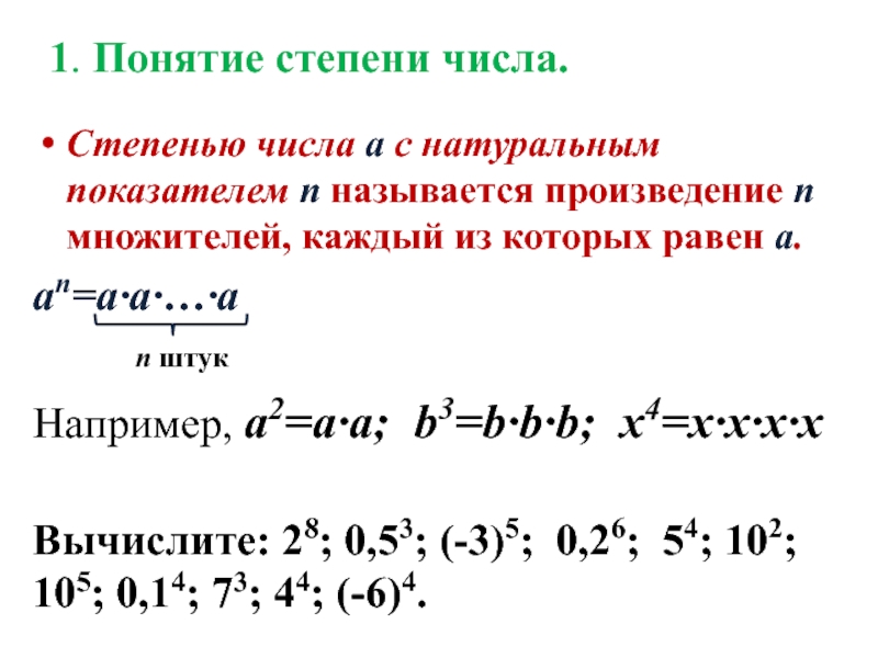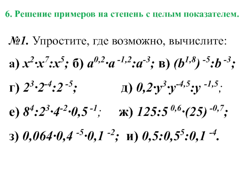 Вычислите: 28; 0,53; (-3)5; 0,26; 54; 102; 105; 0,14; 73; 44; (-6)4.