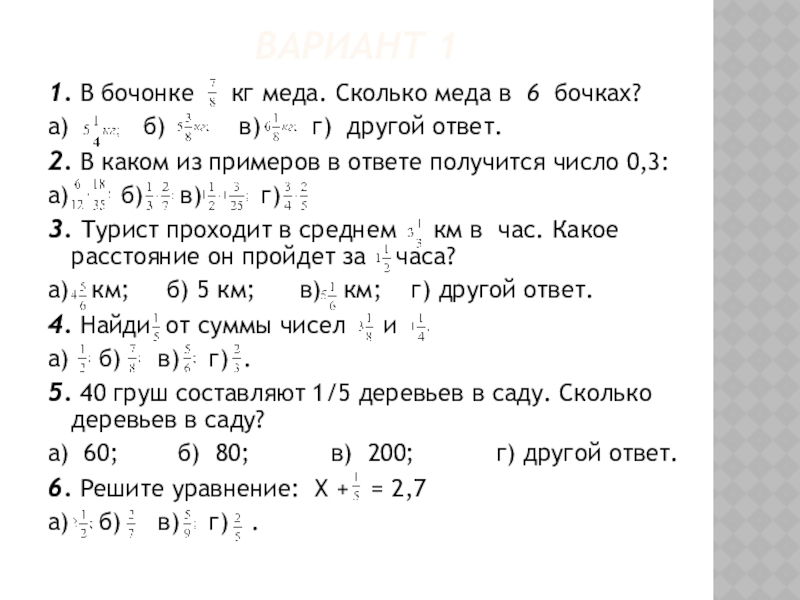 5. 40 груш составляют 1/5 деревьев в саду. Сколько деревьев в саду?