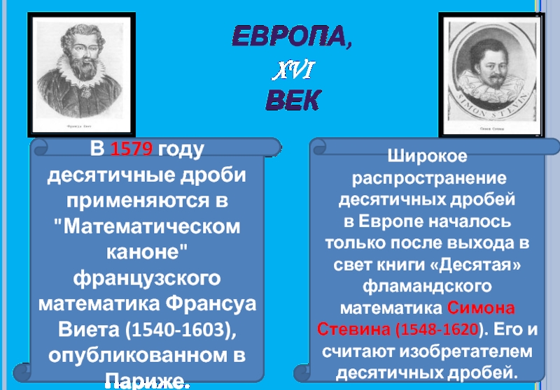 в Европе началось только после выхода в свет книги «Десятая» фламандского математика Симона Стевина (1548-1620). Его и считают изобретателем десятичных дробей.