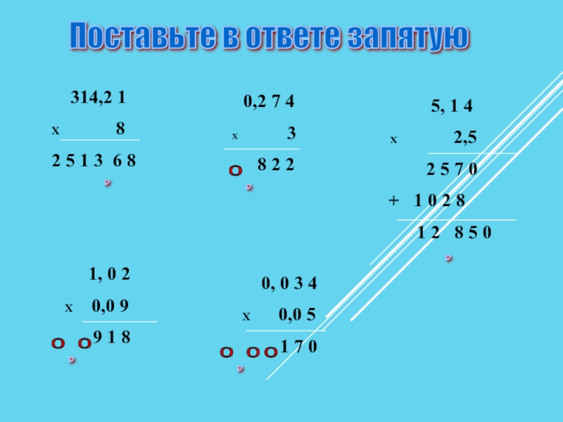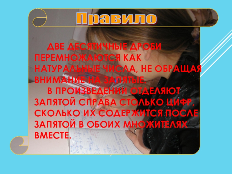 ДВЕ ДЕСЯТИЧНЫЕ ДРОБИ ПЕРЕМНОЖАЮТСЯ КАК НАТУРАЛЬНЫЕ ЧИСЛА, НЕ