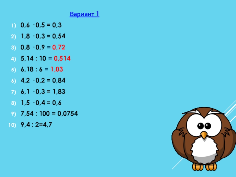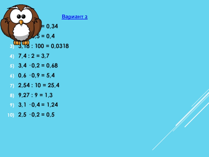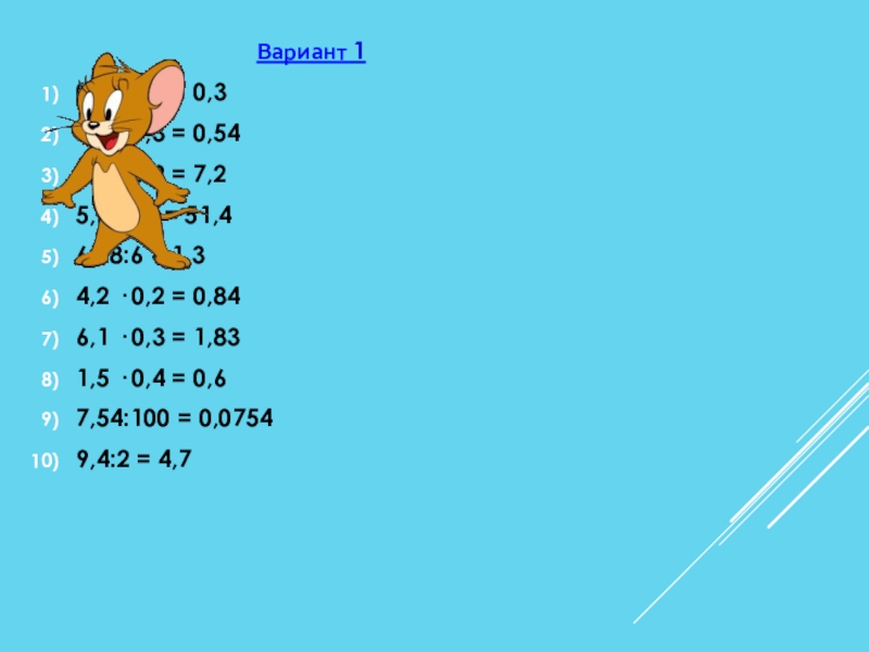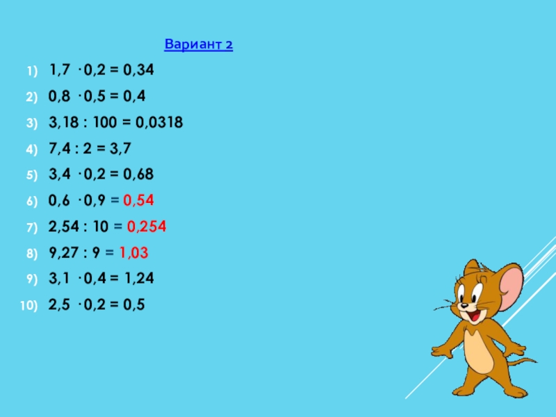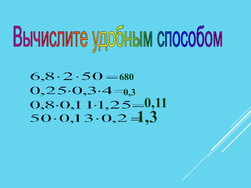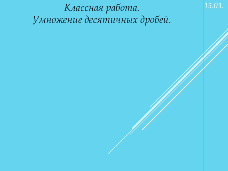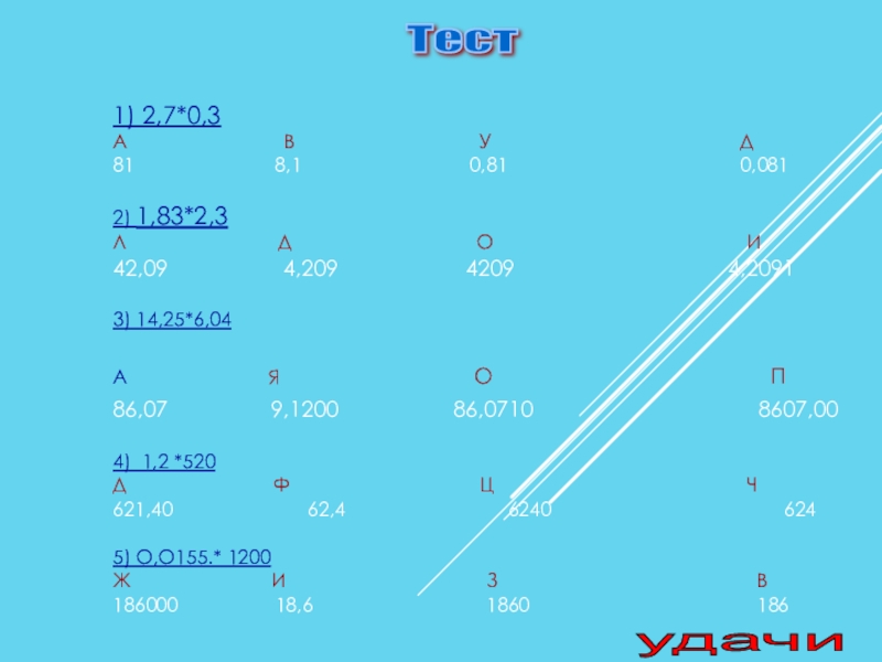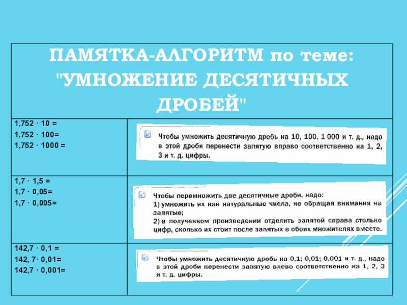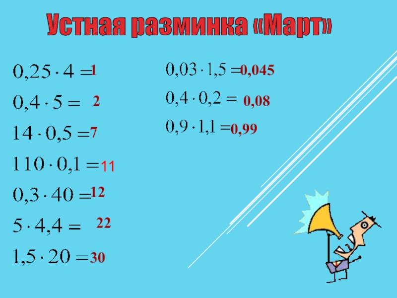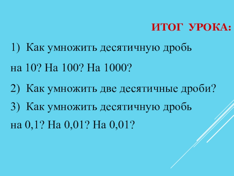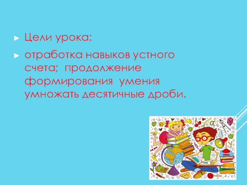 отработка навыков устного счета; продолжение формирования умения умножать десятичные
