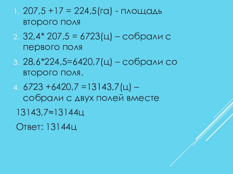 28,6*224,5=6420,7(ц) – собрали со второго поля.
