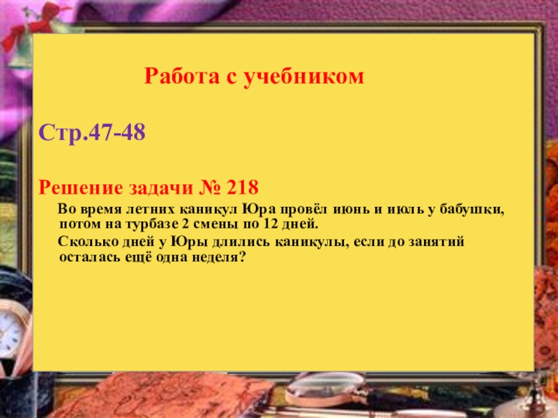 Работа с учебникомСтр.47-48Решение задачи № 218