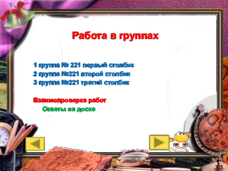 Работа в группах   1 группа № 221 первый столбик2 группа №221 второй столбик3 группа