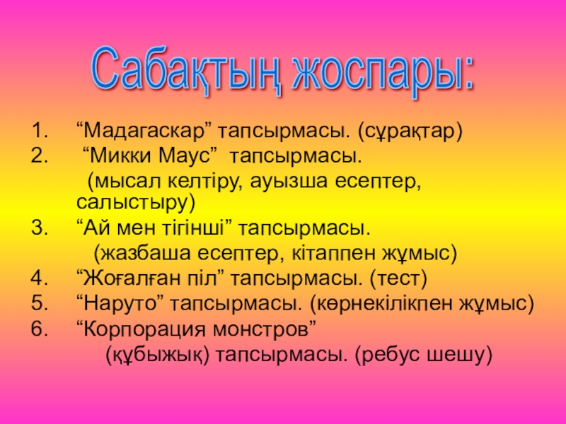 "Микки Маус" тапсырмасы: 1. Мысал келтіру.