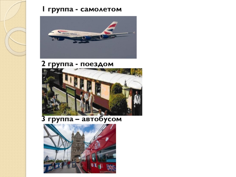 1 группа - самолетом2 группа - поездом 3 группа – автобусом