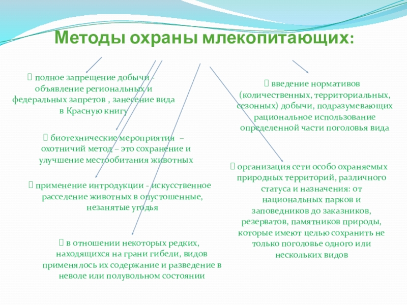 введение нормативов (количественных, территориальных, сезонных) добычи, подразумевающих рациональное использование определенной части поголовья вида