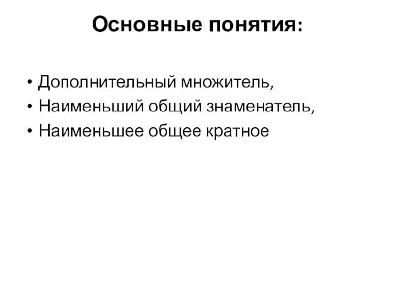 Основные понятия: Дополнительный множитель,Наименьший общий знаменатель,Наименьшее общее кратное