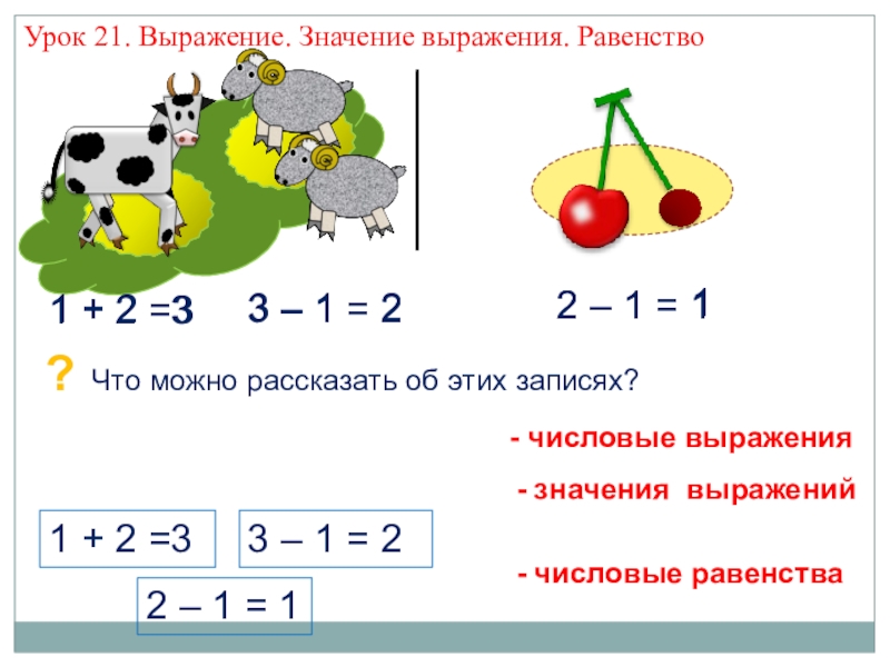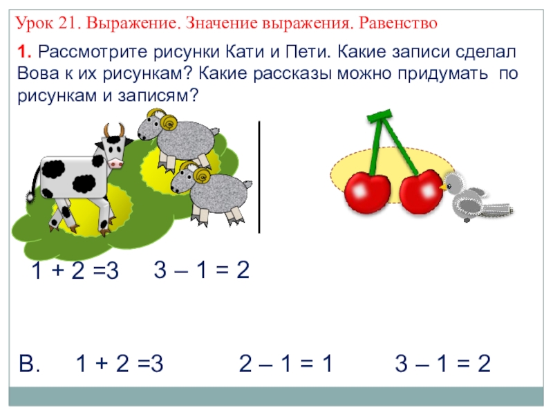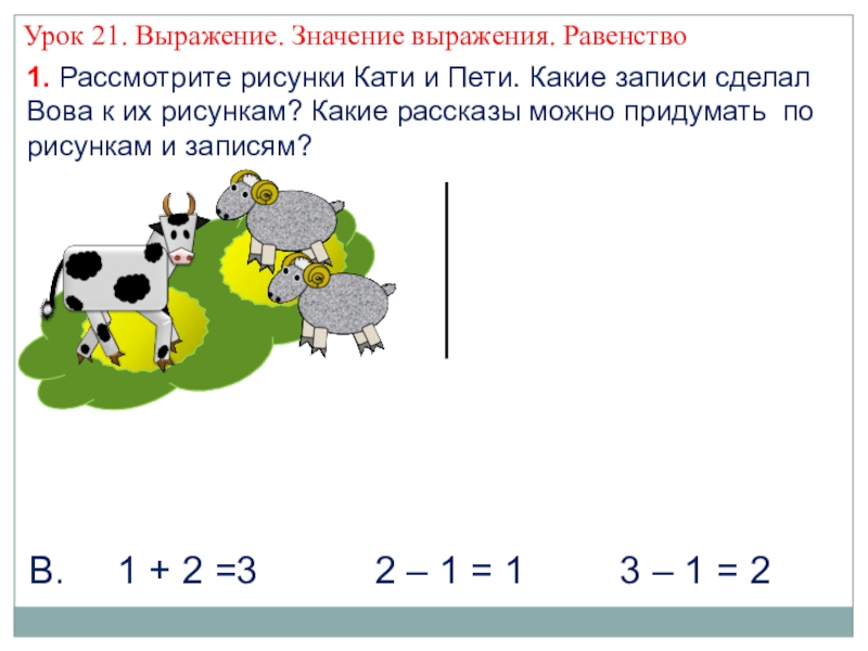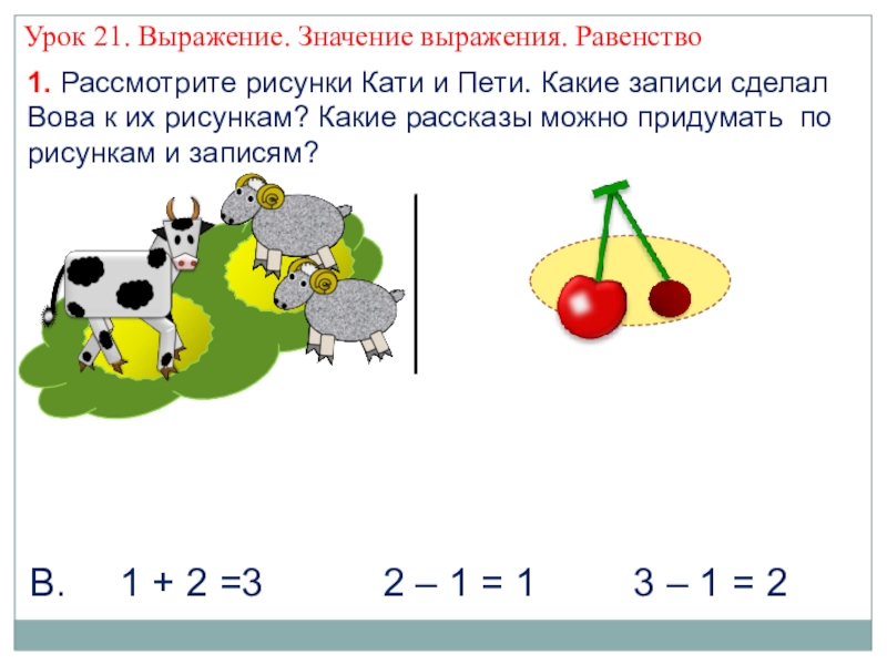 ·Какие рассказы можно придумать по равенствам и рисункам?