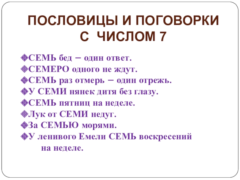 СТИХИ, В КОТОРЫХ ВСТРЕЧАЕТСЯ ЧИСЛО 7