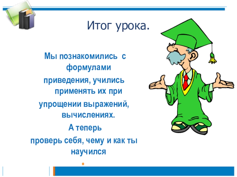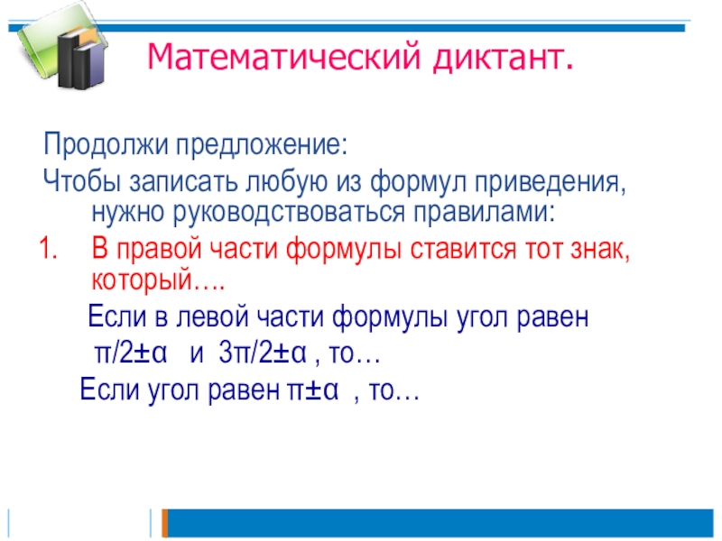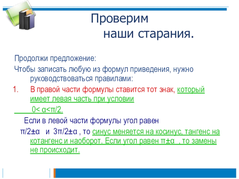 Чтобы записать любую из формул приведения, нужно руководствоваться правилами: