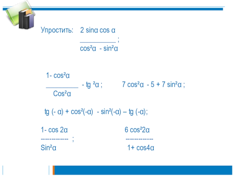 _________ - tg ²α ; 7 cos²α - 5 + 7 sin²α ;