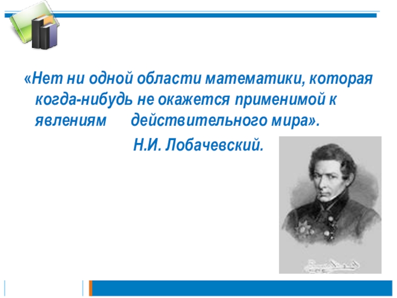 Слайд 3«Нет ни одной области математики, которая когда-нибудь не окажется применимой к