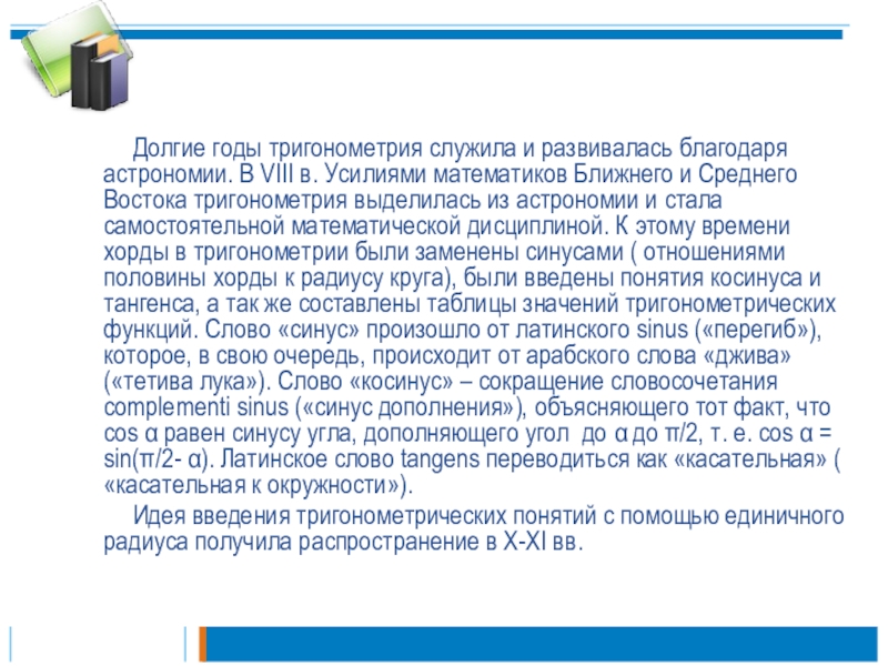 Слайд 20 Долгие годы тригонометрия служила и развивалась