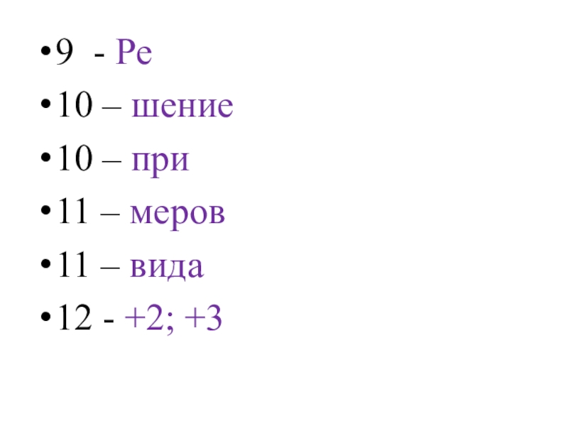 9 - Ре10 – шение10 – при11 – меров11 – вида12 - +2; +3