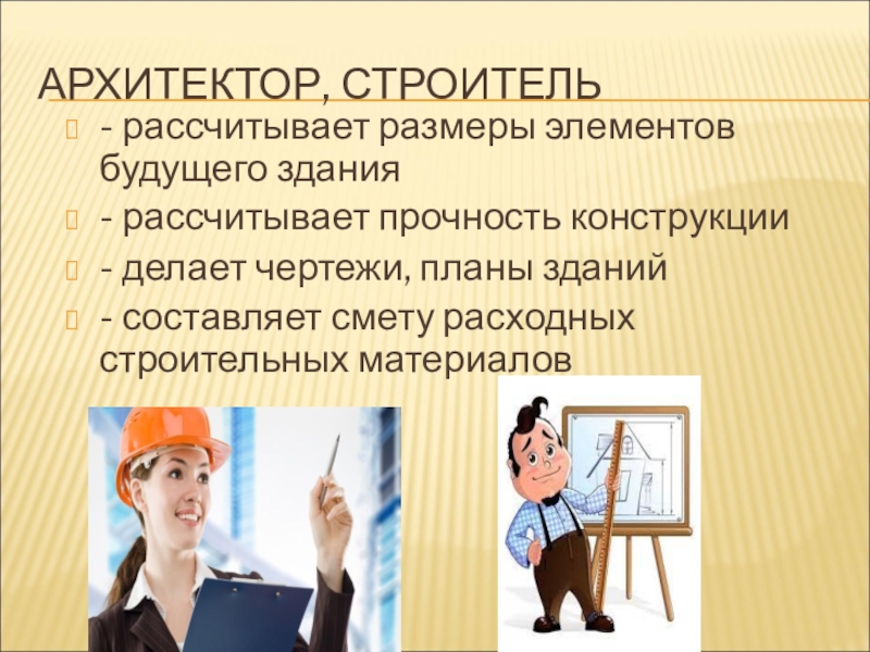 Слайд 9АРХИТЕКТОР, СТРОИТЕЛЬ