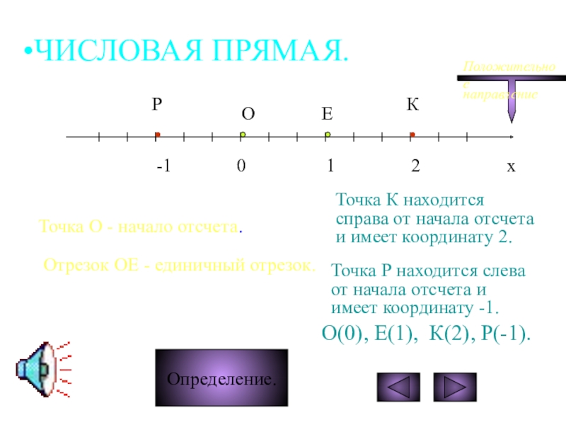 2) Отметить начало отсчета - точку О и выбрать единичный отрезок.