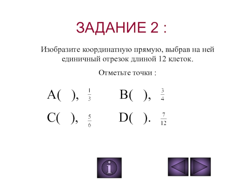 Изобразите координатную прямую, выбрав на ней единичный отрезок длиной 12 клеток.