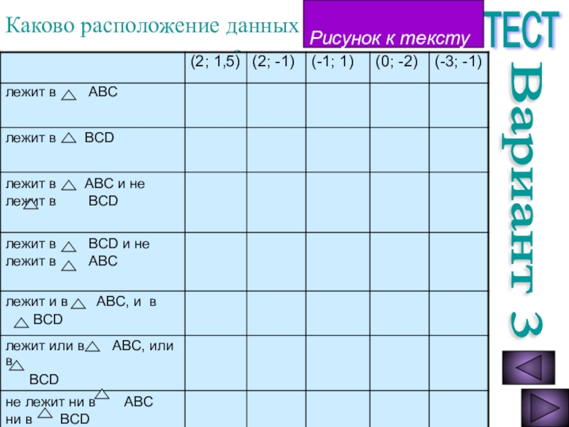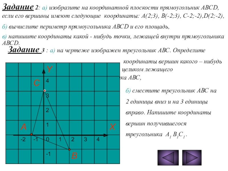 координаты вершин какого – нибудь прямоугольника, целиком лежащего внутри треугольника АВС,