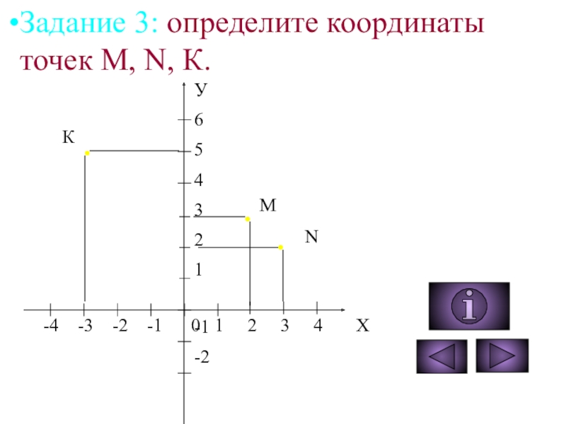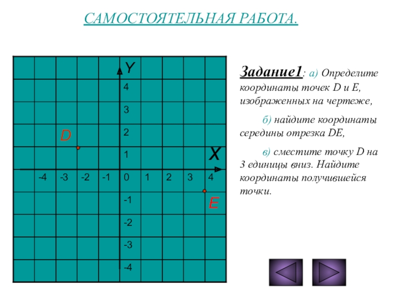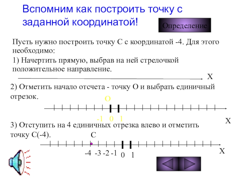 3) Отступить на 4 единичных отрезка влево и отметить точку С(-4).