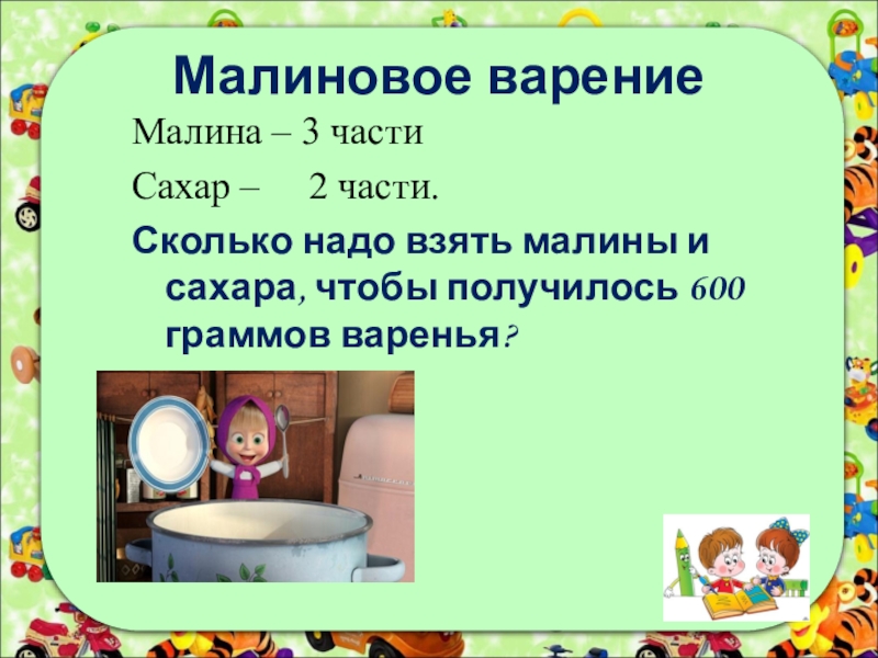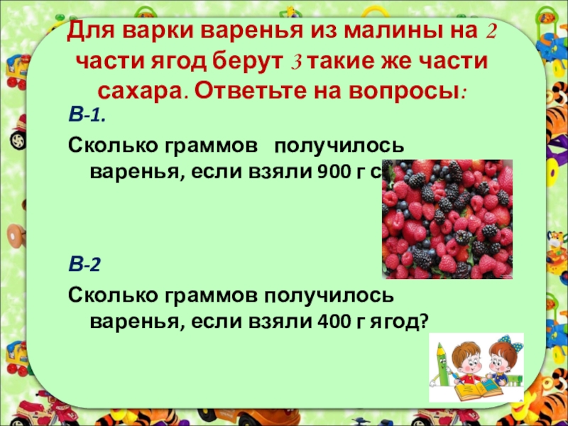 взять малины и сахара, чтобы получилось 600 граммов варенья?