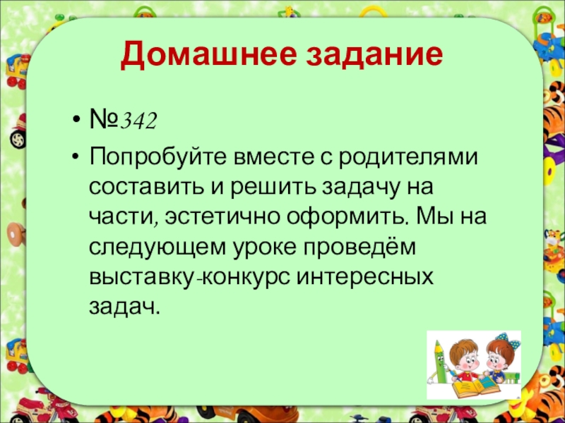 части, эстетично оформить. Мы на следующем уроке проведём выставку-конкурс интересных задач.