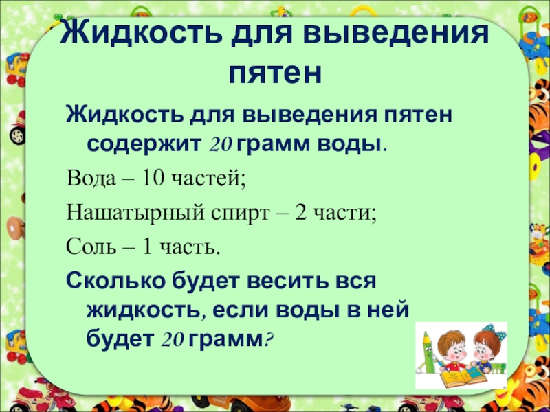 Сколько будет весить вся жидкость, если воды в ней будет 20 грамм?